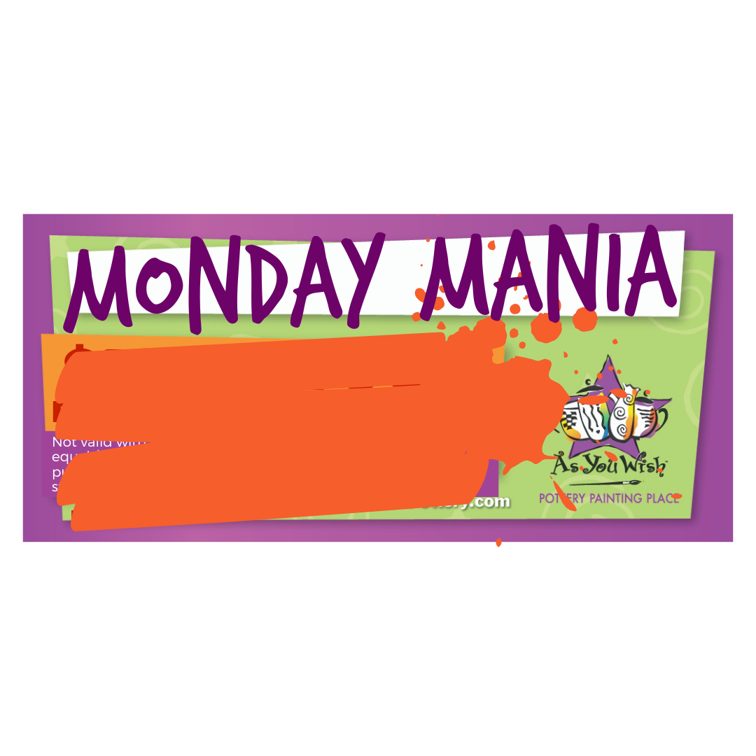 See our latest coupons, studio promotions, and special offers at As You Wish Pottery. Specials are updated regularly, so check back often for new ways to save.